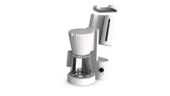 Het servies van de Dressed serie van Alessi is gemaakt van wit porselein en is ontworpen door industrieel ontwerper Marcel Wanders.