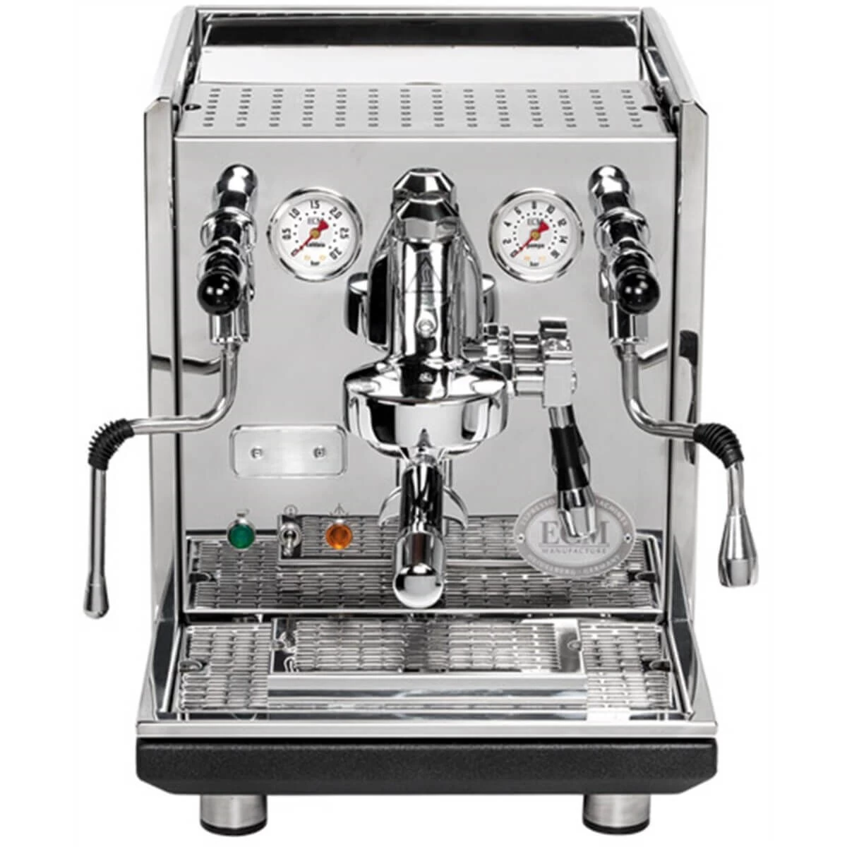 Met de halfautomatische espressomachine van ECM bereidt u snel heerlijke espresso uit gemalen koffiebonen. Met behulp van het vrij beweegbare stoompijpje kunt u mooi melkschuim bereiden voor cappuccino of caffé latte. Door de dubbele boiler heeft u altijd voldoende water op de juiste temperatuur voorhanden. De boiler voor het stomen heeft een inhoud van 2 liter, de boiler voor koffie heeft een inhoud van 0,75 liter.