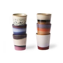 De HK Living 70’s mokken zijn gemaakt van gekleurd geglazuurd aardewerk. Een mok heeft een inhoud van 200 ml, een diameter van 7,5 cm en is 8 cm hoog. Het aardewerk is magnetronbestendig, hierdoor kunt u dranken in de mok in de magnetron opwarmen. Gebruik de HK Living 70’s mok voor het serveren van warme of koude dranken.