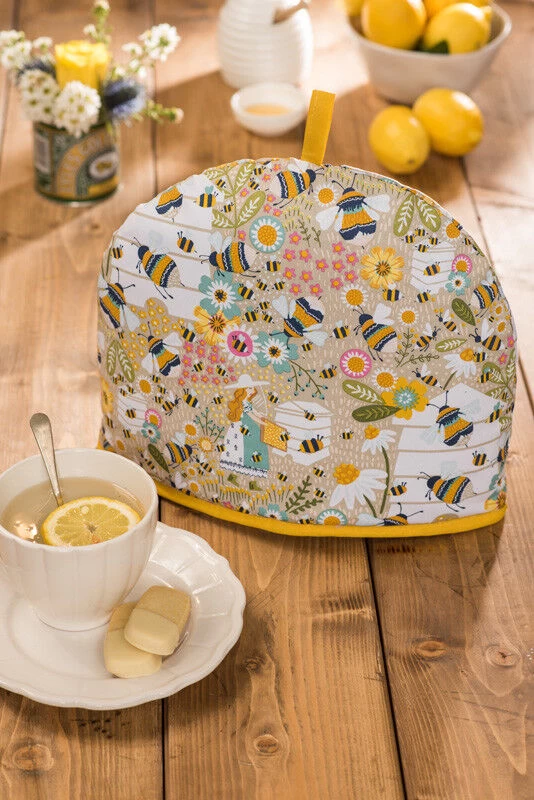 De Bee Keeper theemuts van Ulster Weavers is vervaardigd van katoen en voorzien van een polyester vulling voor isolatie. Gebruik de theemuts om uw theepot langer op temperatuur te houden. De theemuts is voorzien van afbeeldingen van bijen op een beige ondergrond. De theemuts is 35 cm lang en 27 cm hoog.